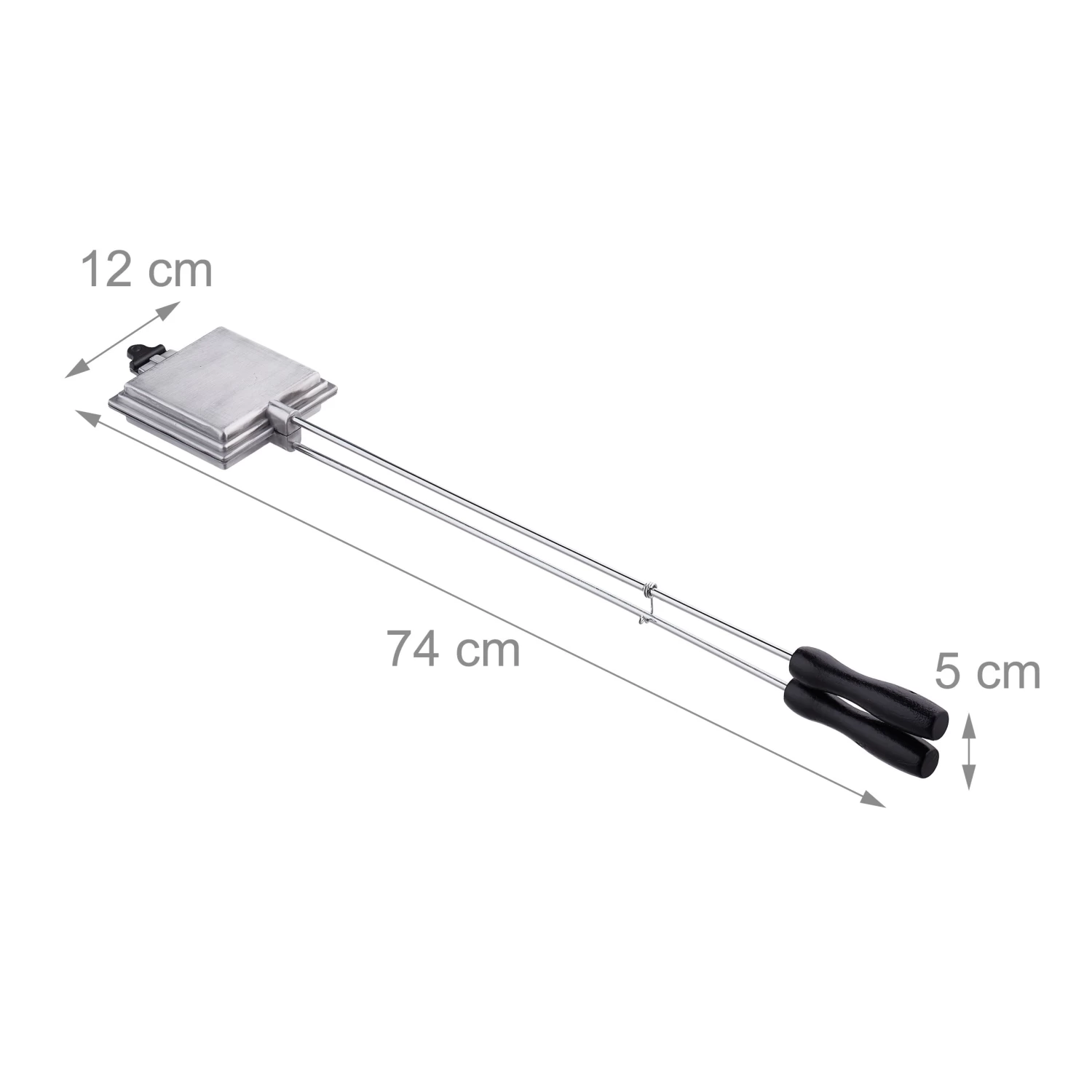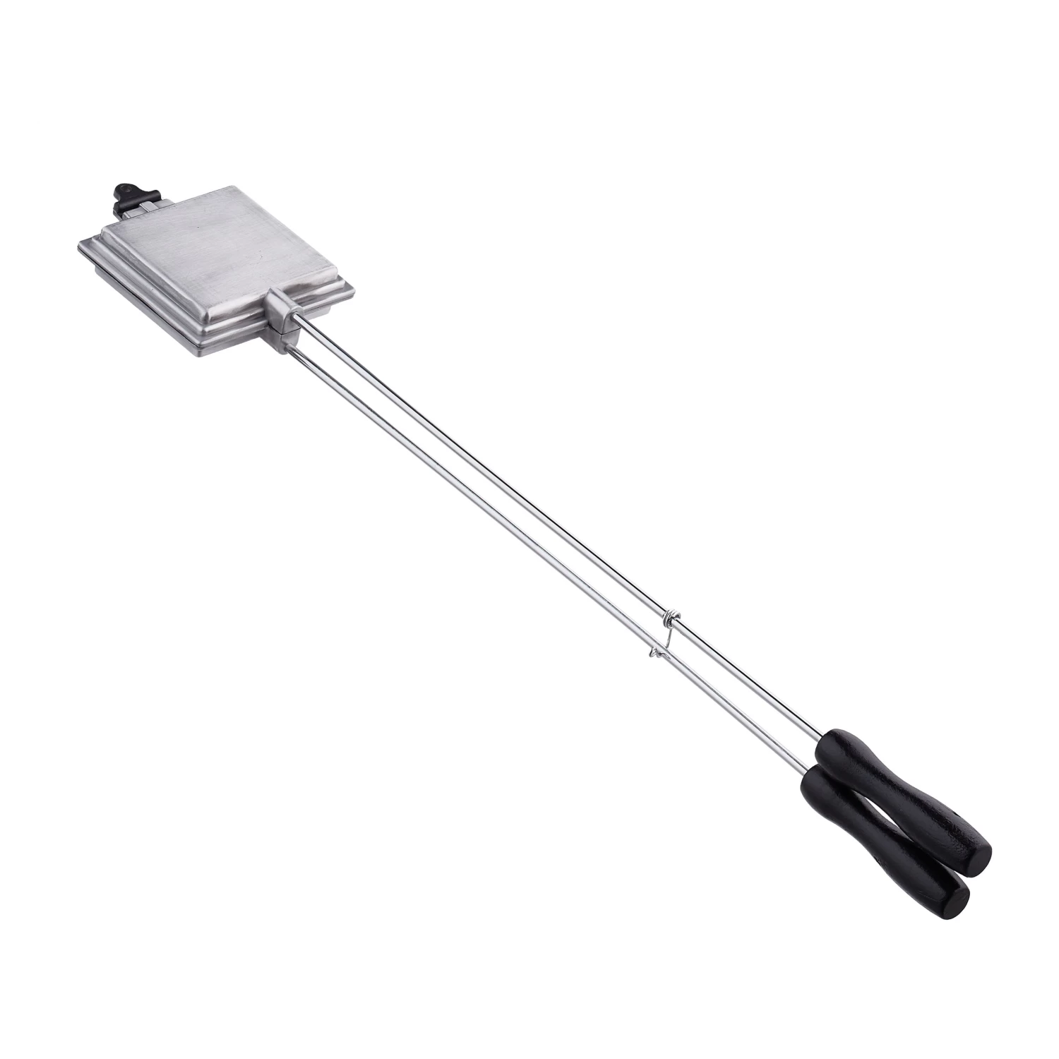 Ein leckerer, heißer Käsetoast, ein raffiniertes Sandwich oder eine süße Waffel beim Camping: All das ist mit diesem Sandwicheisen problemlos möglich. Durch den robusten Aluguss hält der Grilltoaster der Hitze von Lagerfeuer, Grills und Gaskochern stand. Mit einem Verschluss zum Einrasten und einem Haken am Ende des langen Griffs bleibt der Sandwichtoaster für die Dauer der Zubereitung gut verschlossen. Der lange Griff mit Holz schützt zudem vor Hitze und Verbrennungen.