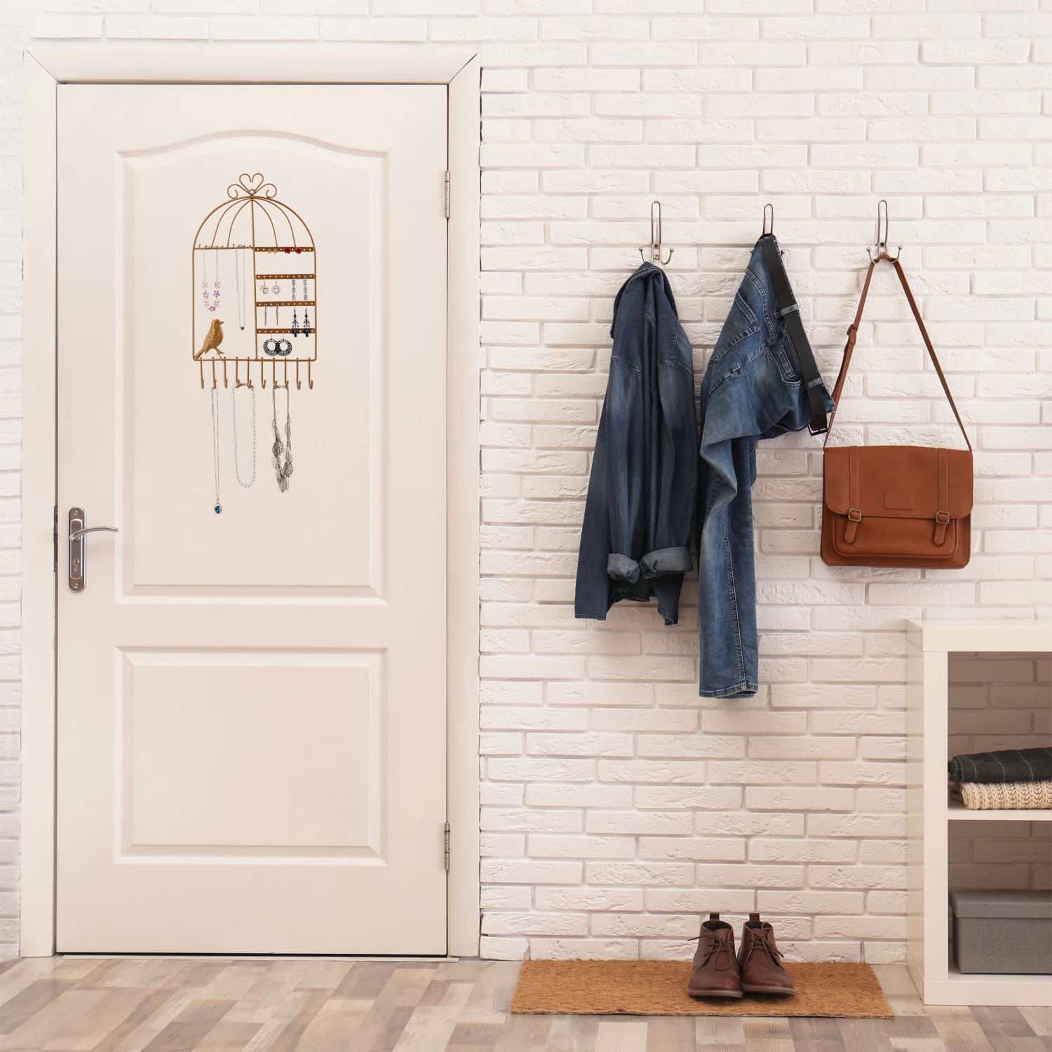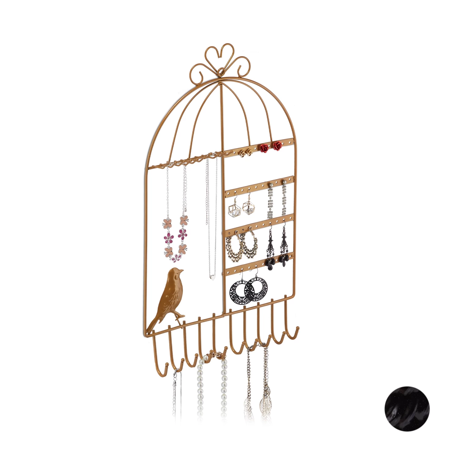 Mit diesem Schmuckhalter bewahren Sie Ihren Schmuck übersichtlich und geordnet auf. Der Schmuckorganizer bietet Platz für Ohrringe und -stecker, Armbänder, Uhren und Halsketten. Da die Schmuckleiste an die Wand montiert wird, lassen sich auch lange Halsketten problemlos aufhängen und sind vor Verheddern geschützt. Dank des romantischen Vogelkäfig-Designs ist der Ohrringhalter zudem ein echter Hingucker und eine stylische Präsentationsmöglichkeit für Ihren Lieblingsschmuck.