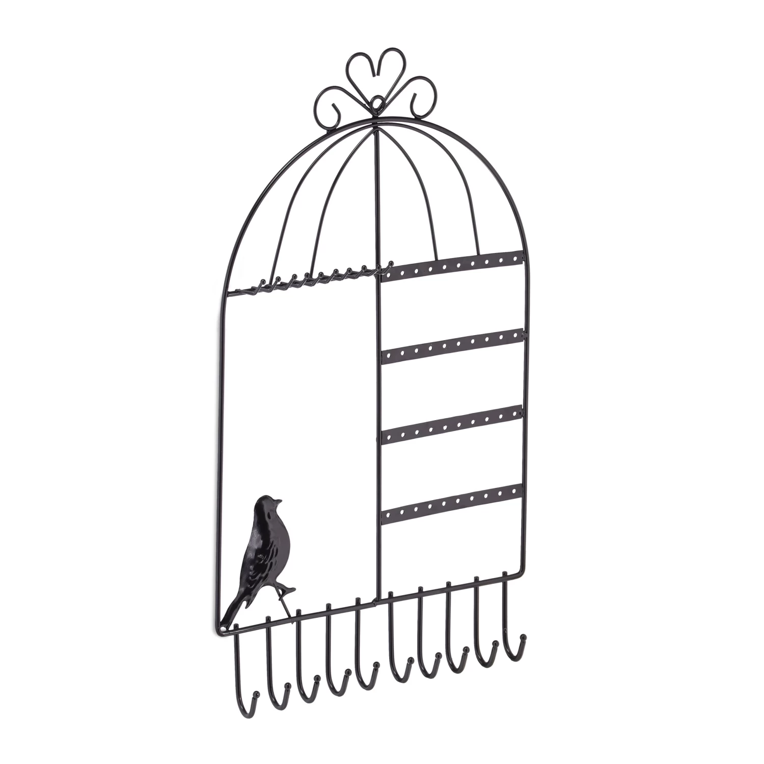Mit diesem Schmuckhalter bewahren Sie Ihren Schmuck übersichtlich und geordnet auf. Der Schmuckorganizer bietet Platz für Ohrringe und -stecker, Armbänder, Uhren und Halsketten. Da die Schmuckleiste an die Wand montiert wird, lassen sich auch lange Halsketten problemlos aufhängen und sind vor Verheddern geschützt. Dank des romantischen Vogelkäfig-Designs ist der Ohrringhalter zudem ein echter Hingucker und eine stylische Präsentationsmöglichkeit für Ihren Lieblingsschmuck.