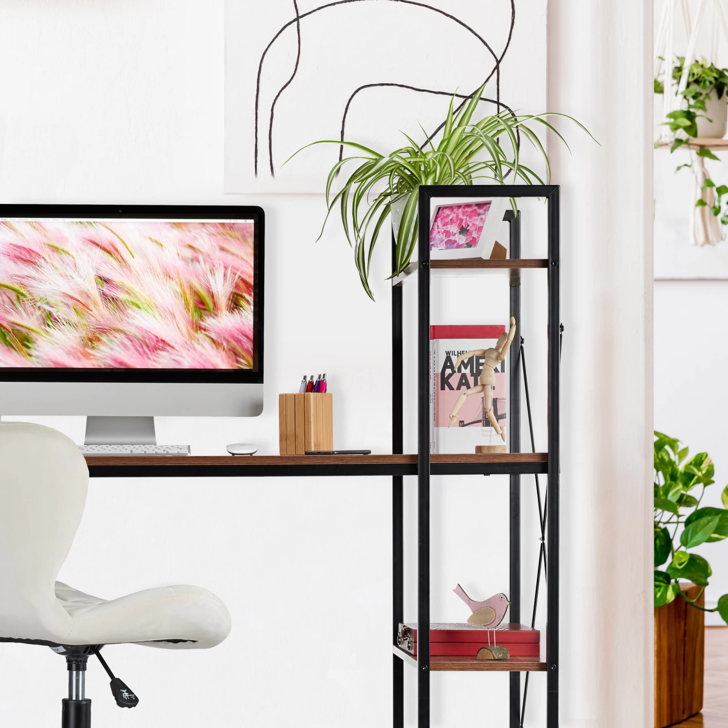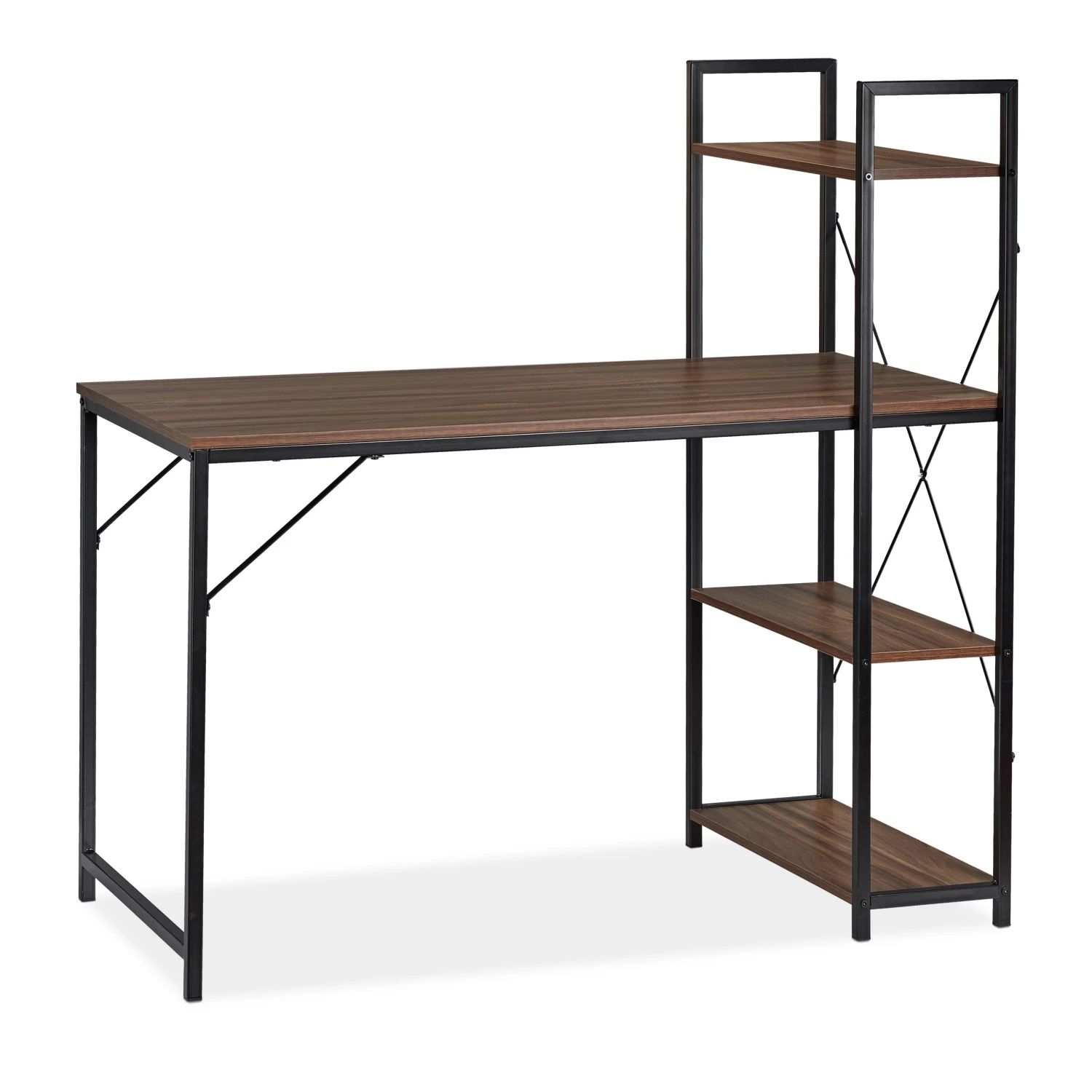 Der kompakte PC-Schreibtisch ist die perfekte Kombination aus Tisch und Regal. In die vier offenen Fächer bringen Sie griffbereit Ordner, Bücher sowie Schreib- und Büroutensilien unter. Die große Arbeitsfläche bietet ausreichend Platz zum Zeichnen, Schreiben und Arbeiten am Laptop oder PC. Ob zu Hause im Wohnzimmer, Jugendzimmer, Arbeitszimmer oder im Büro – Jugendliche wie Erwachsene haben mit diesem Computertisch die perfekte Workstation im modernen Design gefunden. Unter dem Home-Office-Tisch gibt es zudem ausreichend Bodenfreiheit, beispielsweise für einen Rollcontainer.