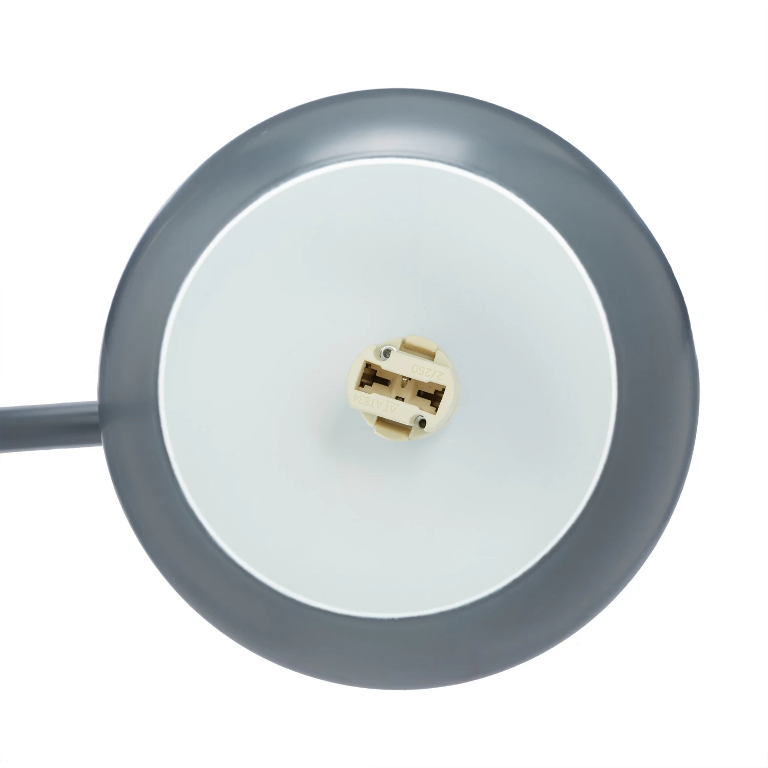 Für eine angenehme Atmosphäre am Arbeitsplatz ist die richtige Beleuchtung unerlässlich. Die Büro-Tischlampe ist mit ihrem neigbaren Lampenschirm ideal, um am Schreibtisch für das passende Licht zu sorgen. Die Schreibtischlampe überzeugt ebenso als Leselampe im Wohnzimmer oder als Nachttischlampe im Schlafzimmer. Der kugelförmige Lampenschirm am Ende des zarten Lampenhalses sorgt dabei für einen echten Hingucker. Das graue Design der Metall-Tischleuchte passt besonders zu modernen Einrichtungen.