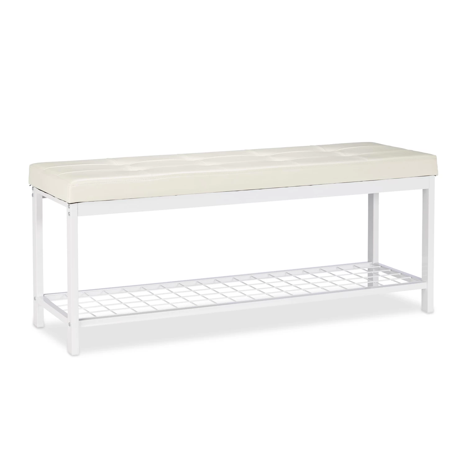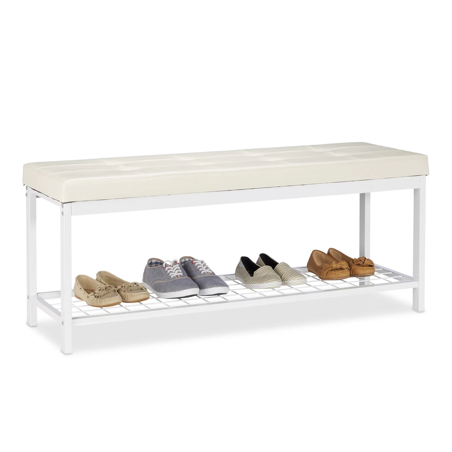 Sich im Flur auf die Schnelle die Schuhe an- oder auszuziehen, wird dank der vielseitigen Schuhbank XXL zum reinsten Vergnügen. Anstatt sich im Stehen abzumühen, nehmen Sie einfach auf der bequemen Sitzpolsterung Platz. Eine geräumige Ablage für Ihre Straßen- oder Hausschuhe ist ein weiterer Pluspunkt der Sitzbank. Die Metallbeine münden in Schoner aus Kunststoff, die verhindern, dass sich die Flurbank in Form unschöner Kratzer im Untergrund verewigt.