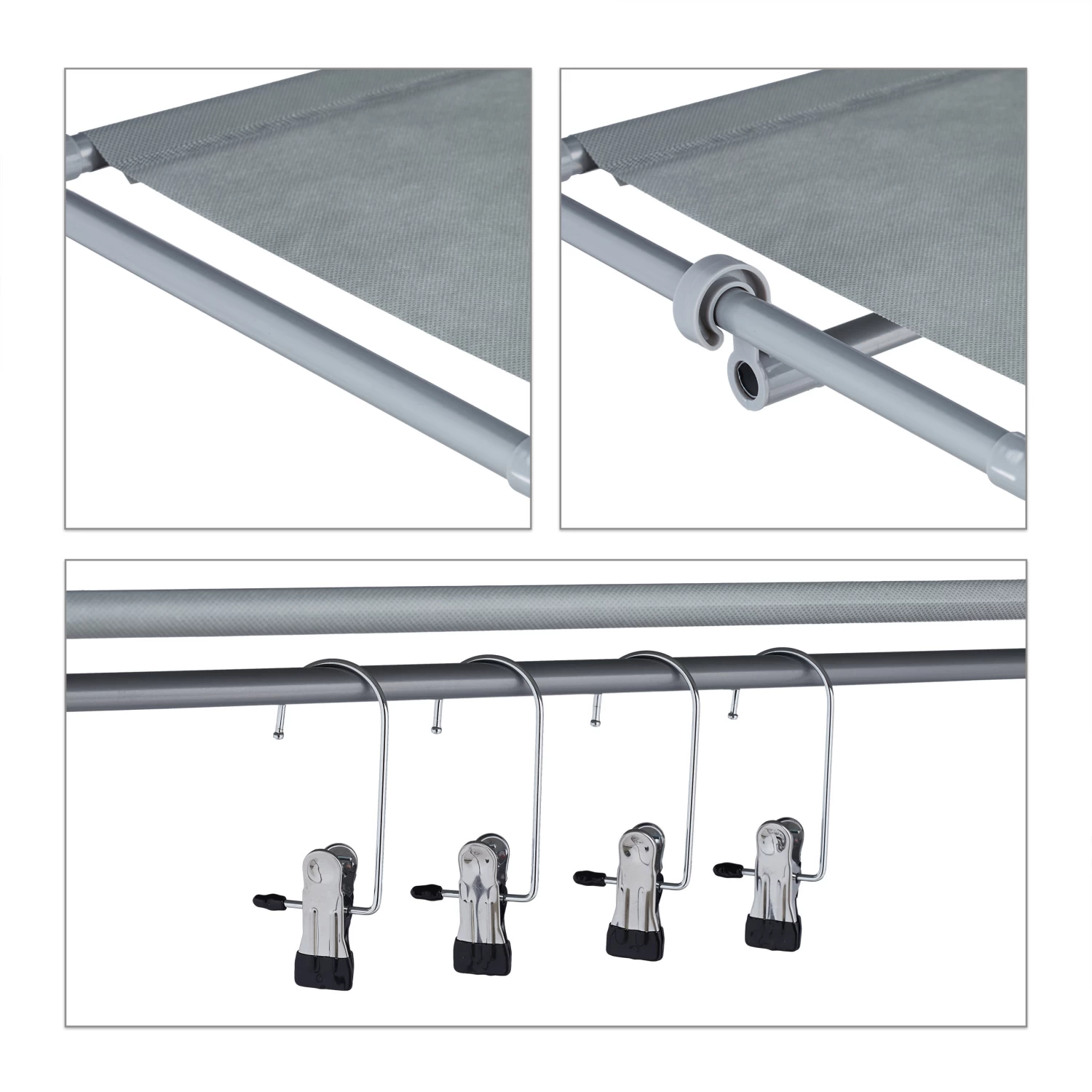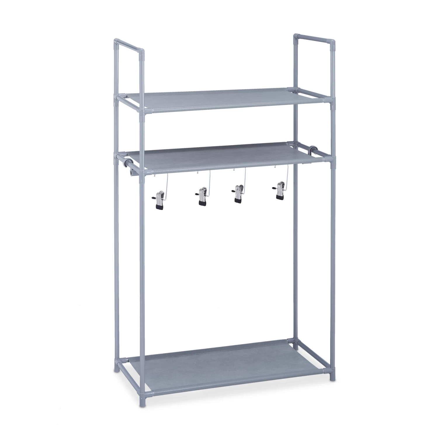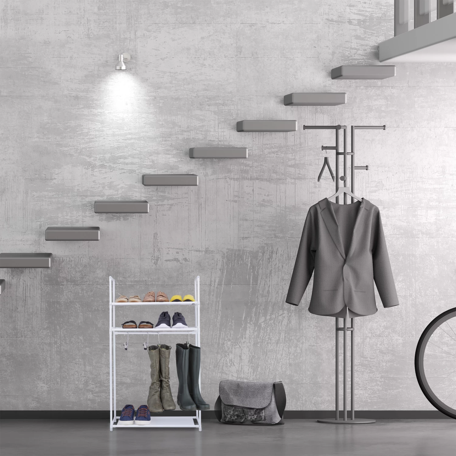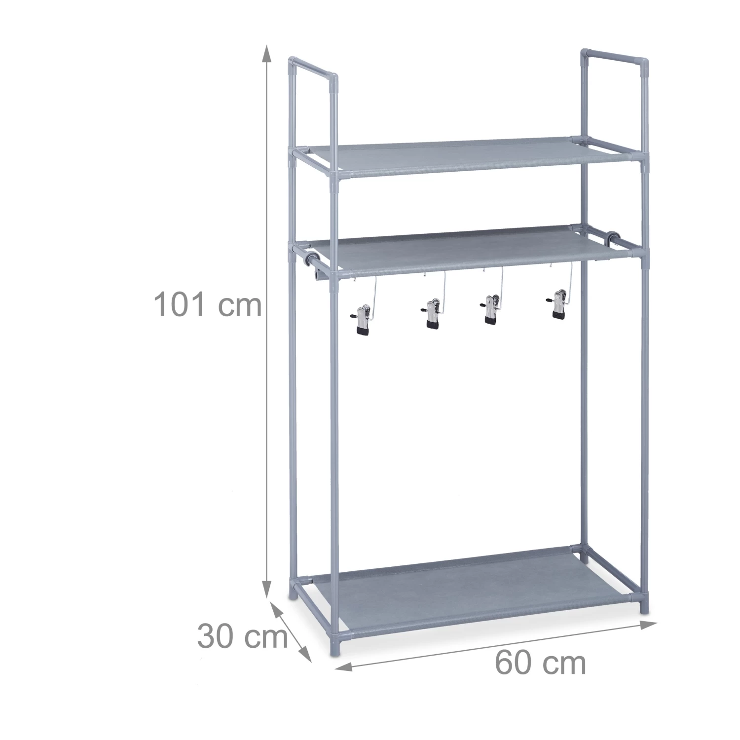 In diesem Schuhregal mit Stiefelfach lassen sich auf 3 Ebenen aus gespanntem Vlies bis zu 10 Paar Schuhe unterbringen. 4 Haken bieten Platz für Stiefel. Aufgrund des einfachen Steckprinzips lässt sich die Schuhablage schnell und einfach aufbauen. Das robuste Stahlgestell des Schuhorganizers sorgt dabei für entsprechende Stabilität. Mit seiner geringen Tiefe eignet sich das Sneakerregal besonders für schmale Flure und Treppenhäuser und auch beim Camping überzeugt es dank geringem Gewicht.