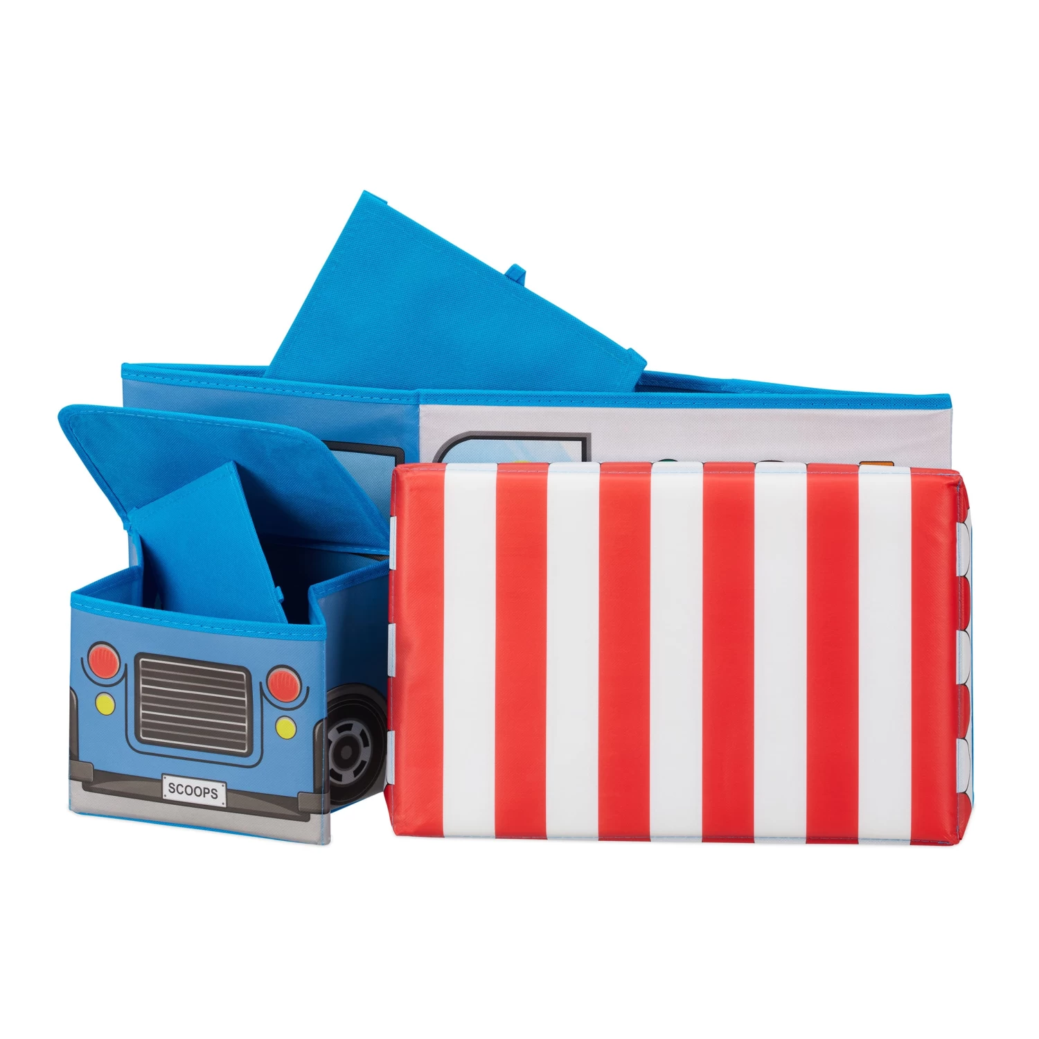 Die kindgerechten Motive auf der Faltbox fügen sich gut ein und machen das Aufräumen zum Spaßakt.
