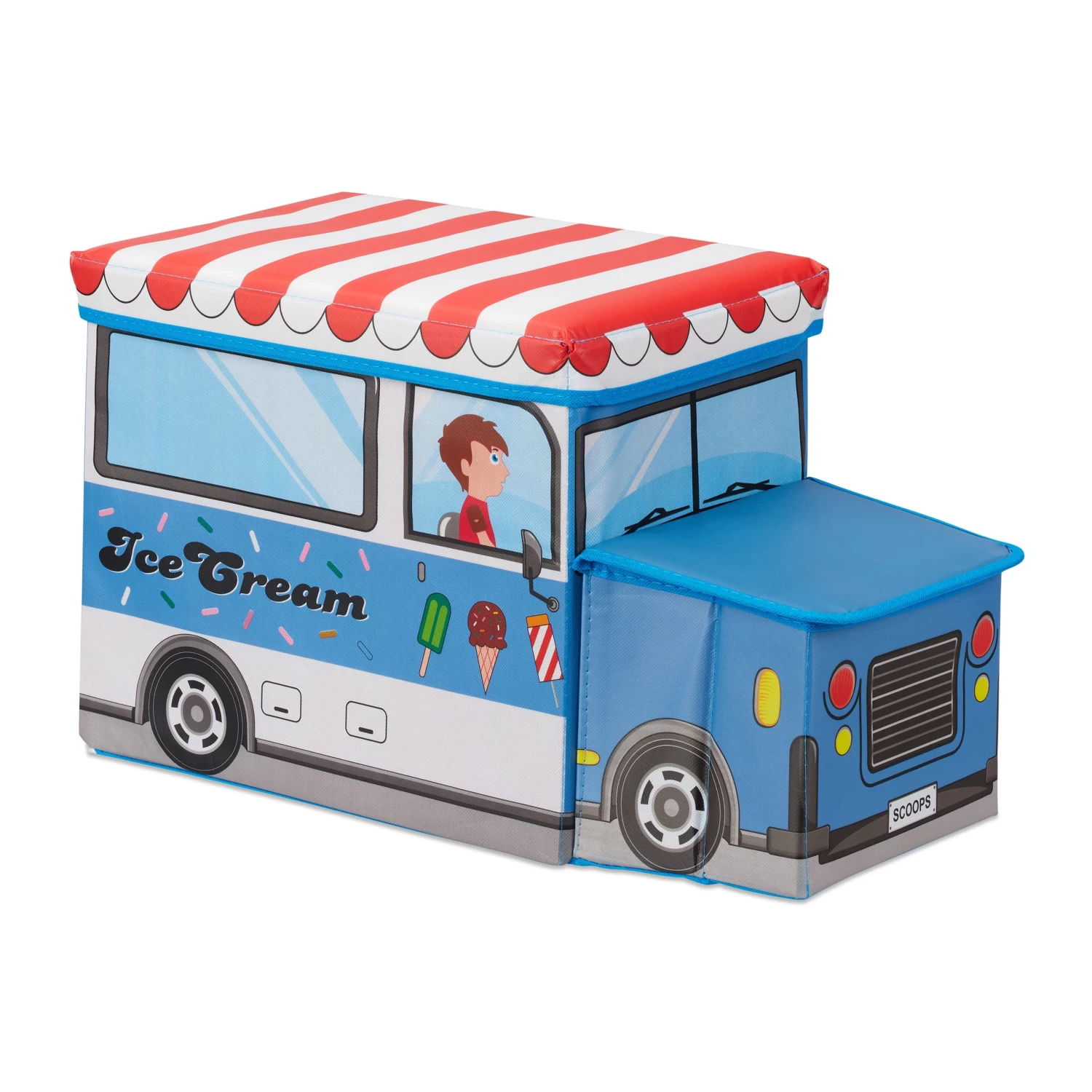 Befüllen Sie den großzügigen Stauraum dieser faltbaren Spielzeugbox mit Gegenständen aus dem Kinderzimmer wie Bälle, Bauklötze, Kuscheltiere, Kinderkleidung und mehr. Für Kleinteile eignet sich das Extra-Fach. Öffnen Sie einmal dessen Deckel und lassen Sie sich überraschen. Im Handumdrehen ist die Unordnung beseitigt. Außerdem können Sie und Ihr Kind die Spielzeugkiste gleichzeitig als Sitzbank nutzen. Bei Platzbedarf ist die Kiste in Windeseile zusammengefaltet und verstaut.