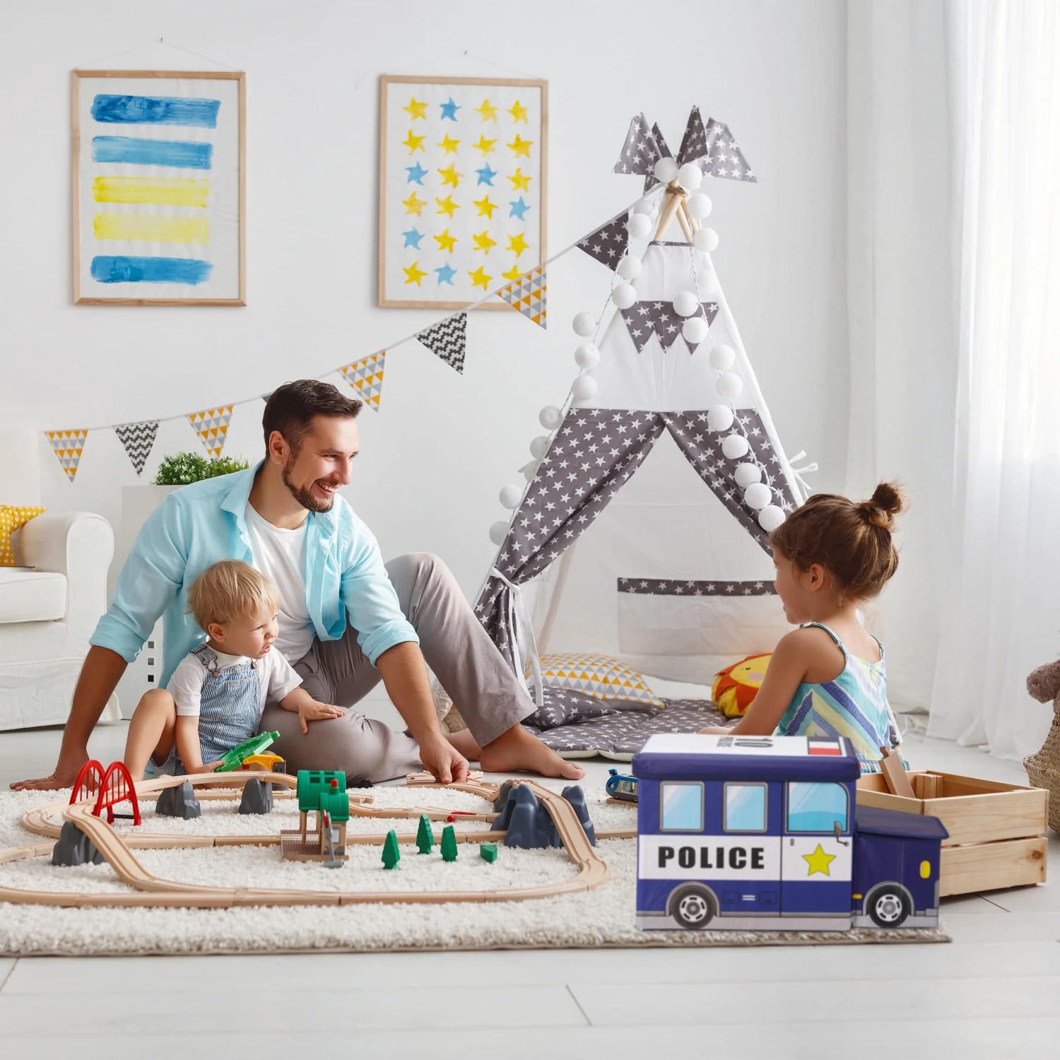 Befüllen Sie den großzügigen Stauraum dieser faltbaren Spielzeugbox mit Gegenständen aus dem Kinderzimmer wie Bälle, Bauklötze, Kuscheltiere, Kinderkleidung und mehr. Für Kleinteile eignet sich das Extra-Fach. Öffnen Sie einmal dessen Deckel und lassen Sie sich überraschen. Im Handumdrehen ist die Unordnung beseitigt. Außerdem können Sie und Ihr Kind die Spielzeugkiste gleichzeitig als Sitzbank nutzen. Bei Platzbedarf ist die Kiste in Windeseile zusammengefaltet und verstaut.
