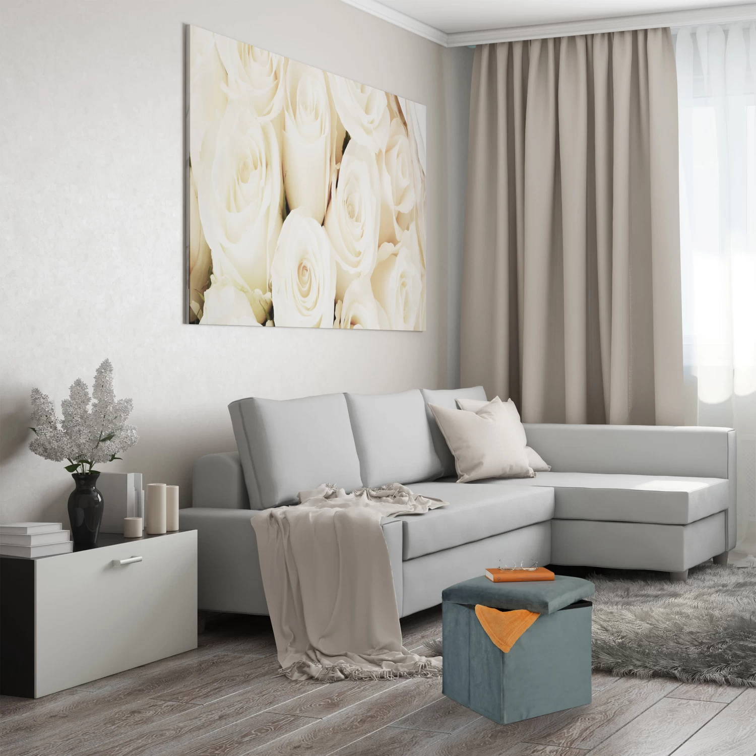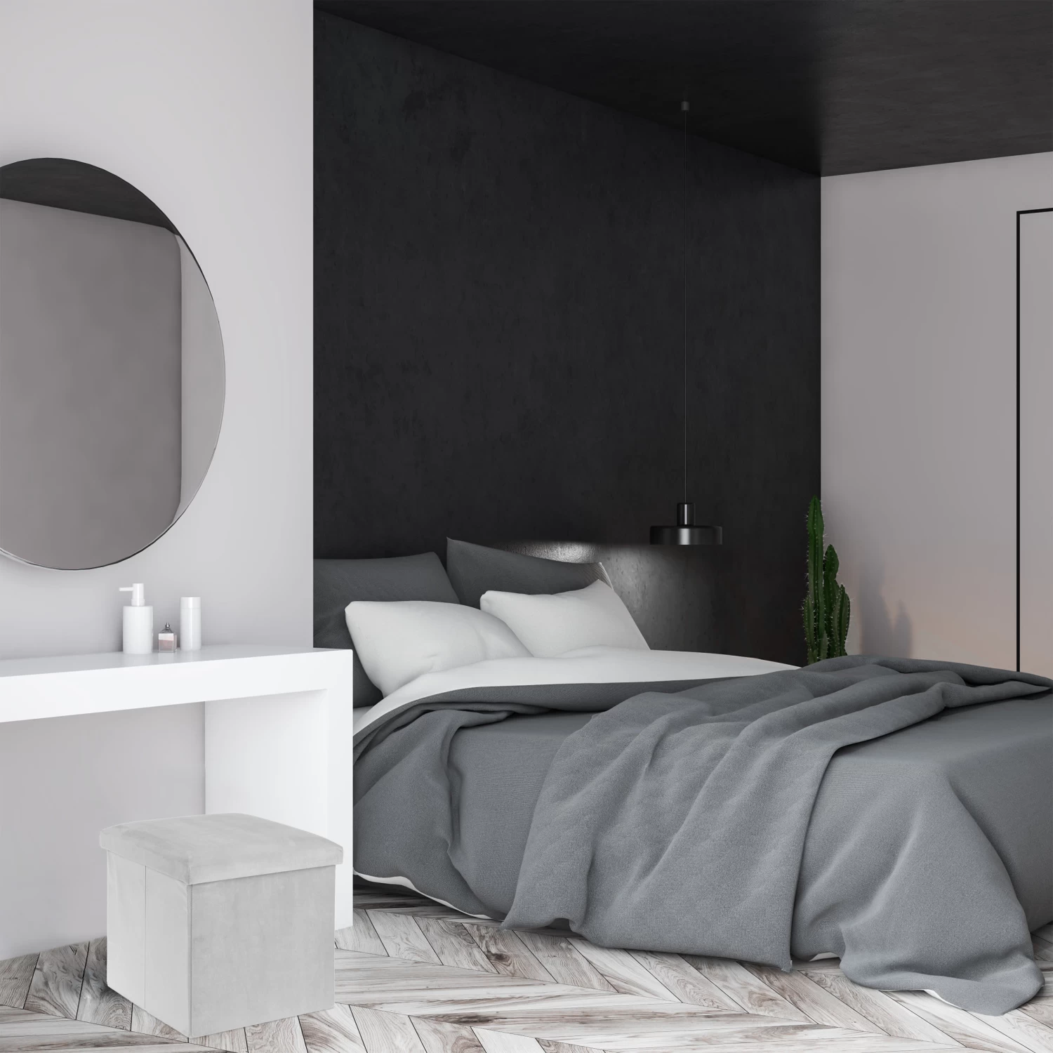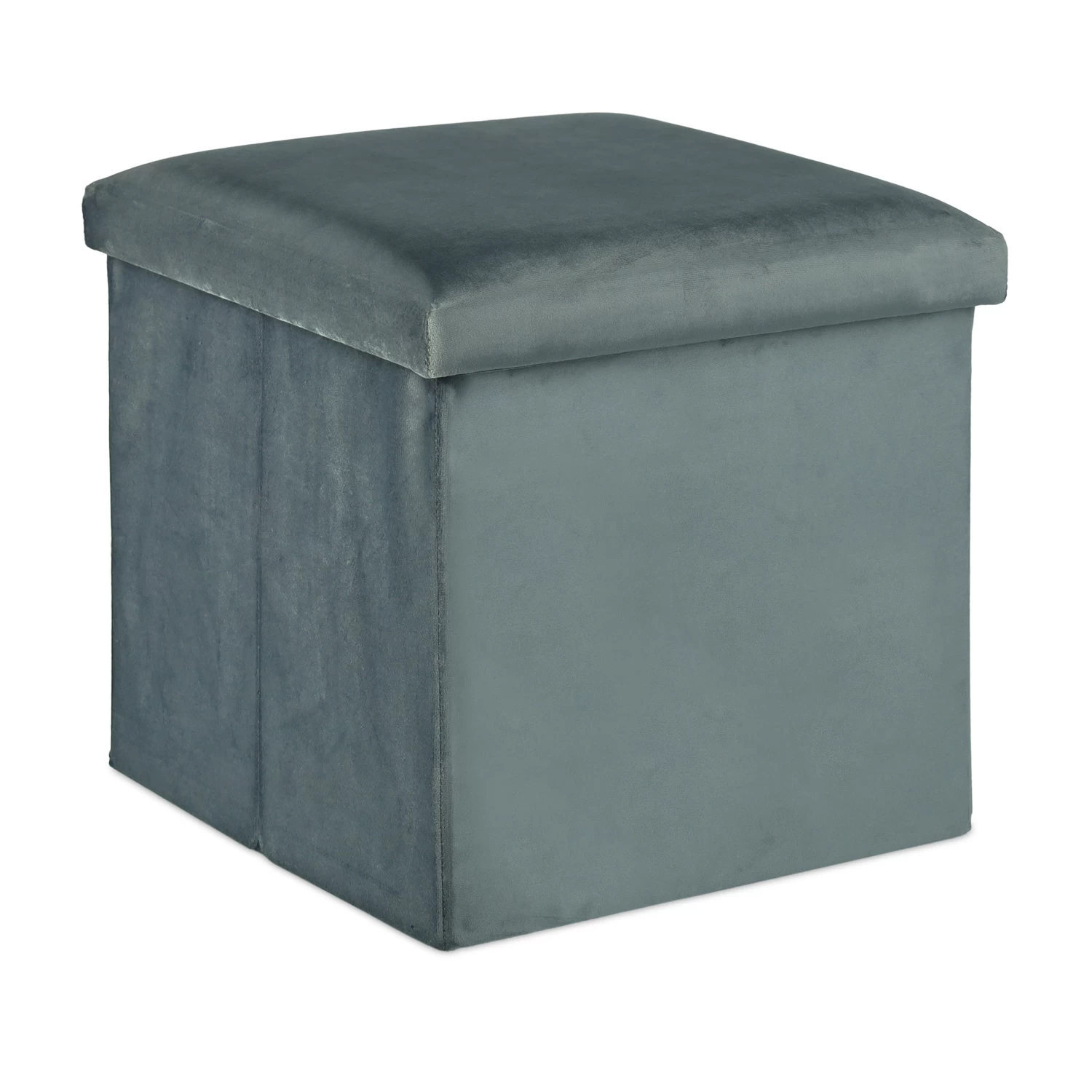 Der ausgefallene Sitzhocker eignet sich ideal als dekorative Aufbewahrungsmöglichkeit für jeden Wohn- und Schlafbereich. Der Sitzwürfel bietet mit seinem großen Innenfach diskreten Stauraum für Bücher, Kleidung und mehr. Seine Polsterung und der Samtbezug machen den Beistellhocker zum bequemen Möbelstück. Alternativ kann der Würfelsitz auch ideal als Fußablage oder Aufbewahrungsbox genutzt werden. Bei Bedarf lässt sich der Couchhocker einfach zusammenfalten und platzsparend verstauen.