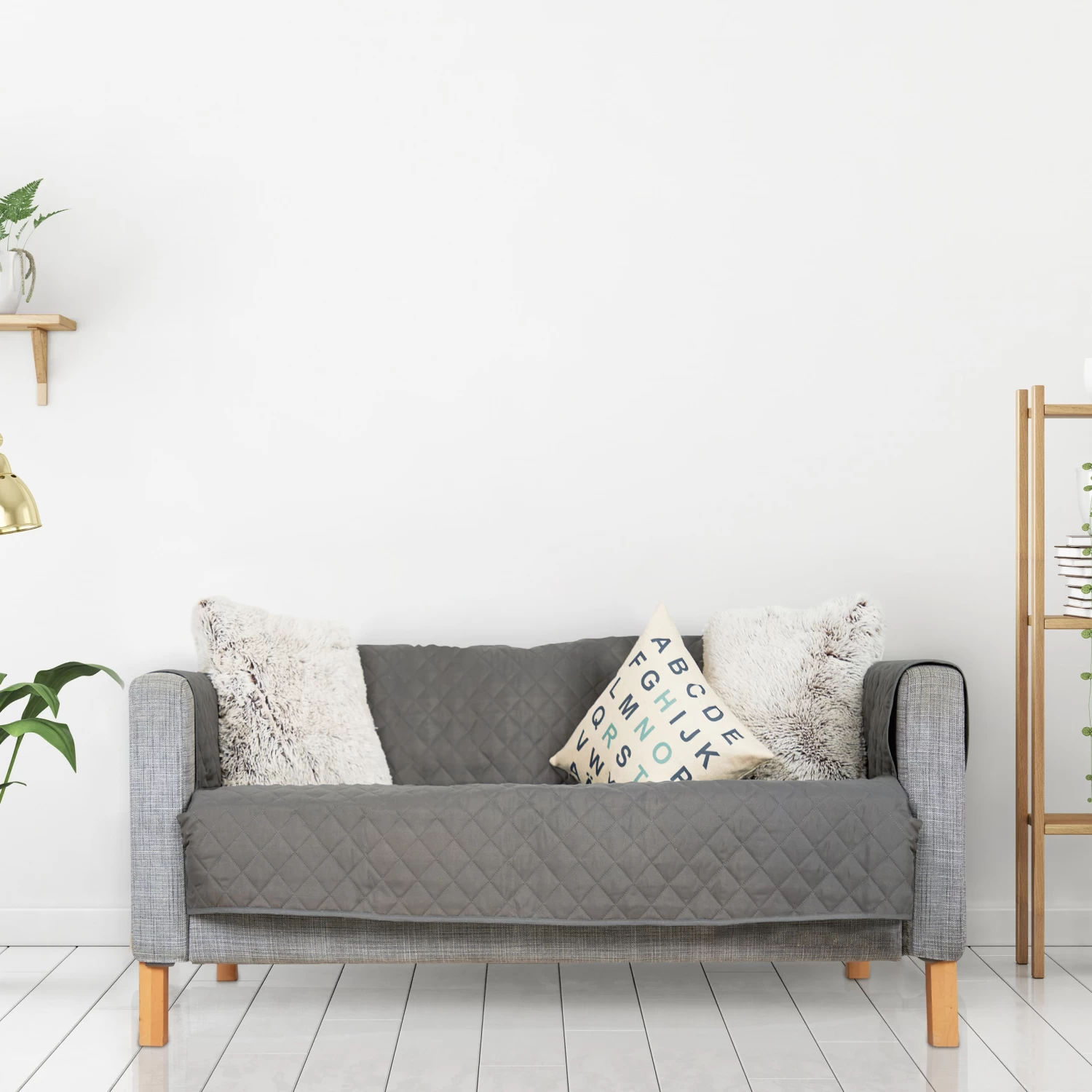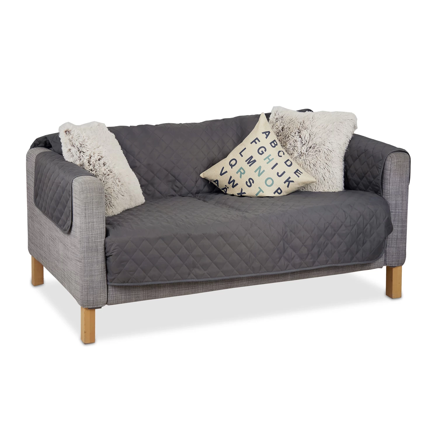– Grauer Sofaüberwurf in gesteppter Optik