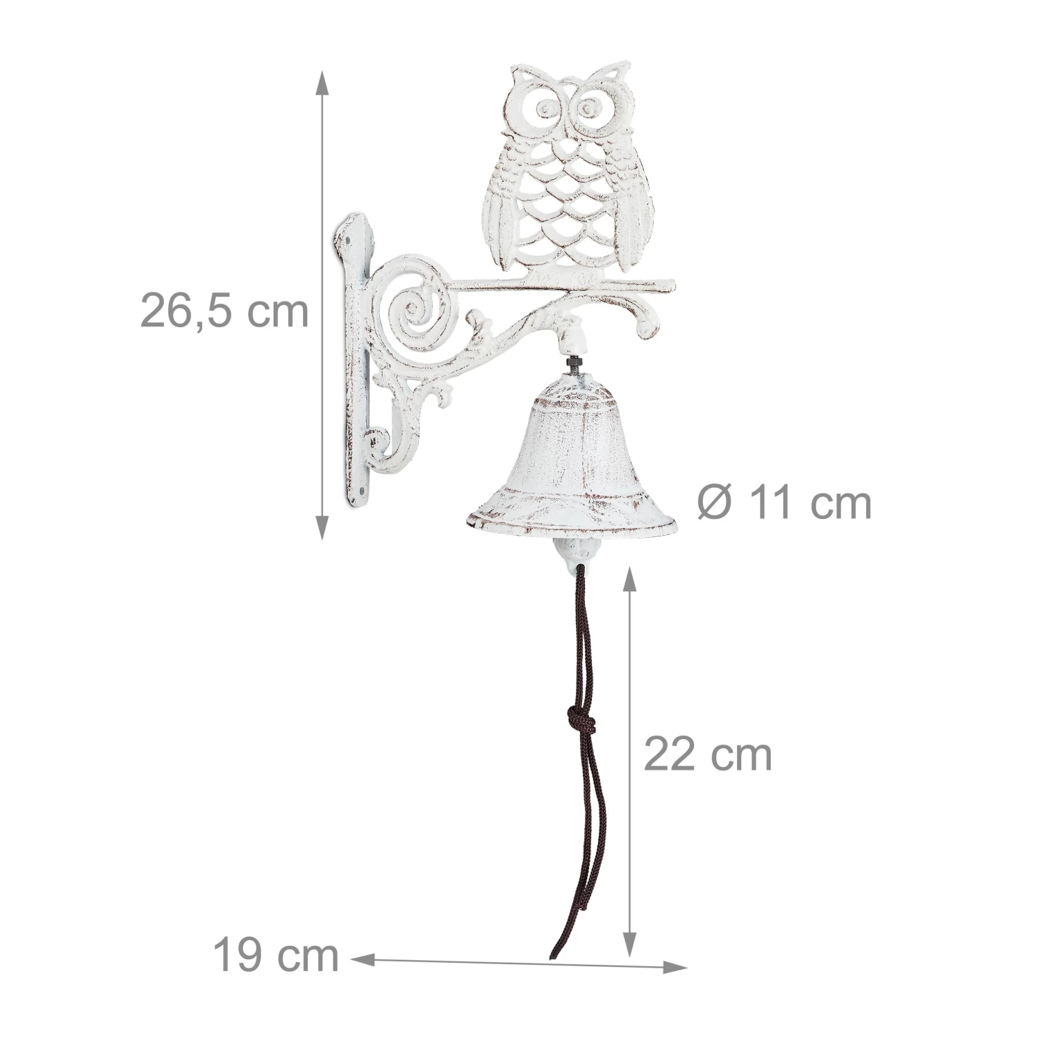 Ihr Eingangsbereich kann ein wenig dekorativen Charme vertragen? Dann ist die Türglocke aus Gusseisen eine klare Empfehlung. Die Glocke ist fest mit der Sitzstange verbunden, auf der es sich eine Eule gemütlich gemacht hat. Die grob strukturierte Oberfläche erweckt den Eindruck, als habe die Wandglocke schon so manches Jahrzehnt auf dem Buckel und präsentiert sich so im antiken Stil. Die nostalgische Variante zur schrillen Türklingel ist auch perfekt als Deko im Garten geeignet.