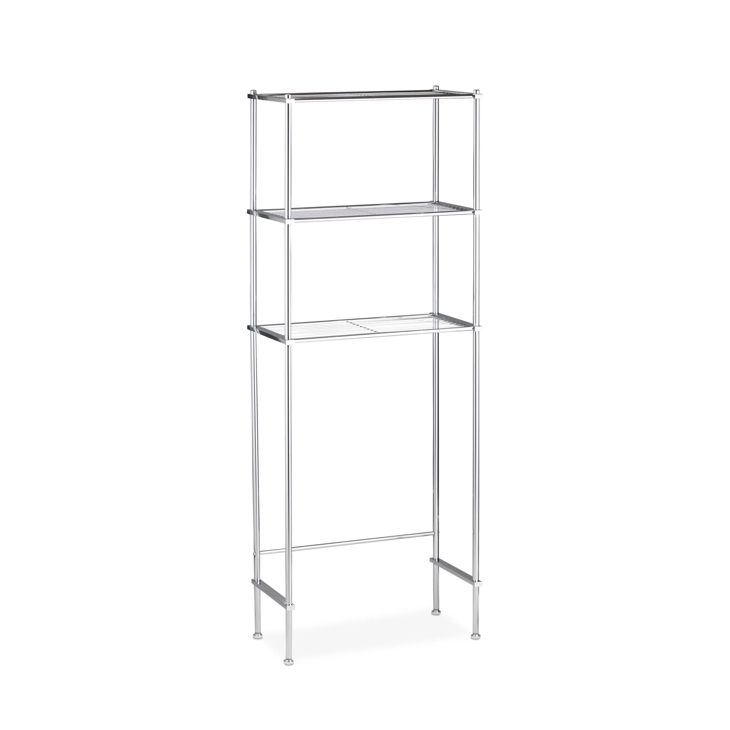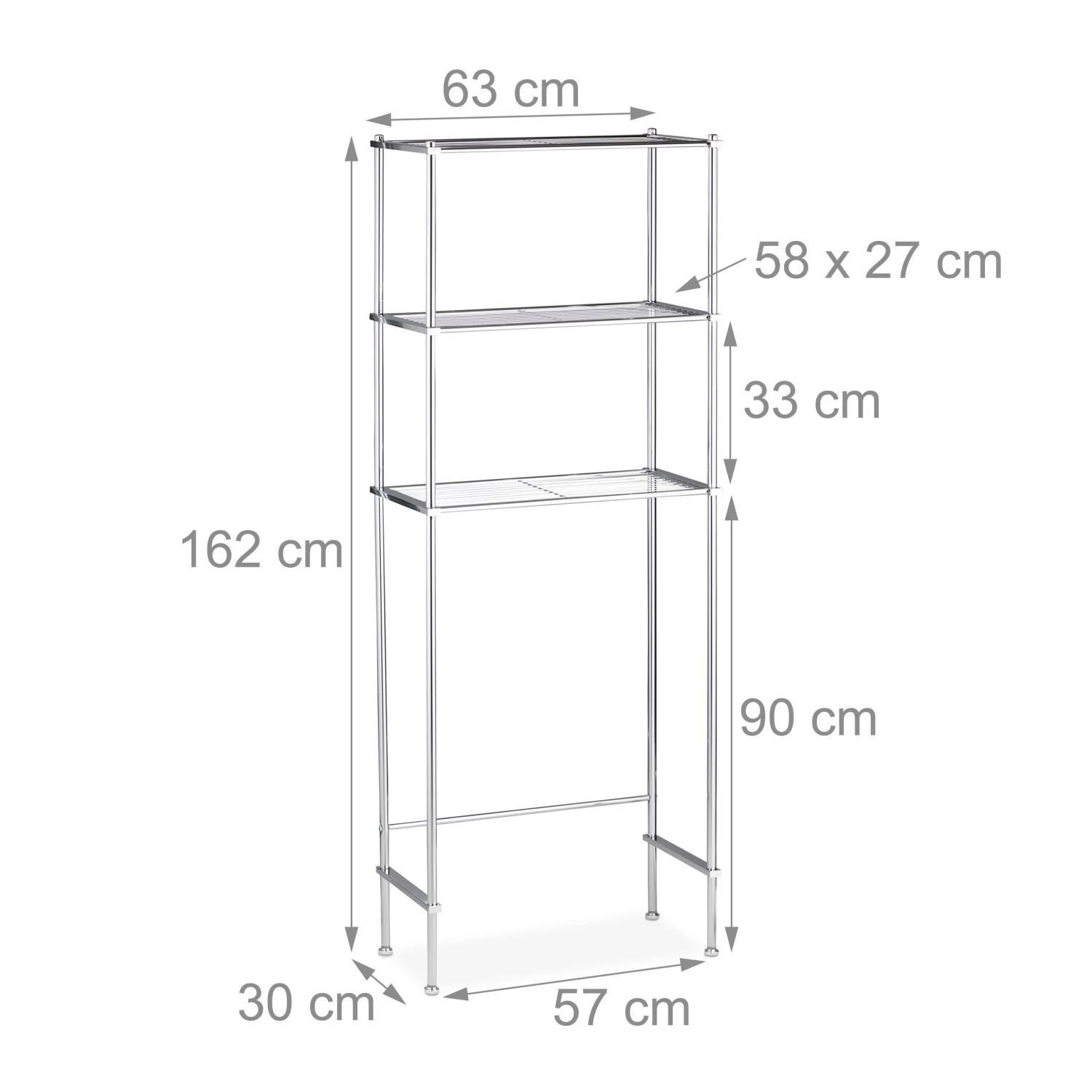 Dieses praktische Waschmaschinenregal bietet mit seinen 3 Ablagen Platz zur Aufbewahrung von Waschmitteln, Reinigungsutensilien oder Toilettenartikeln. Sonst ungenutzter Raum über der Waschmaschine oder dem Trockner verwandelt sich mit dem cleveren Überbau in großzügigen Lagerplatz. Auch als WC-Regal über Toilette und Spülkasten ist das Standregal bestens geeignet. Durch sein schlankes Design nimmt das Toilettenregal selbst nur eine geringe Stellfläche in Anspruch und ist damit vor allem für kleine Bäder ein echter Geheimtipp.