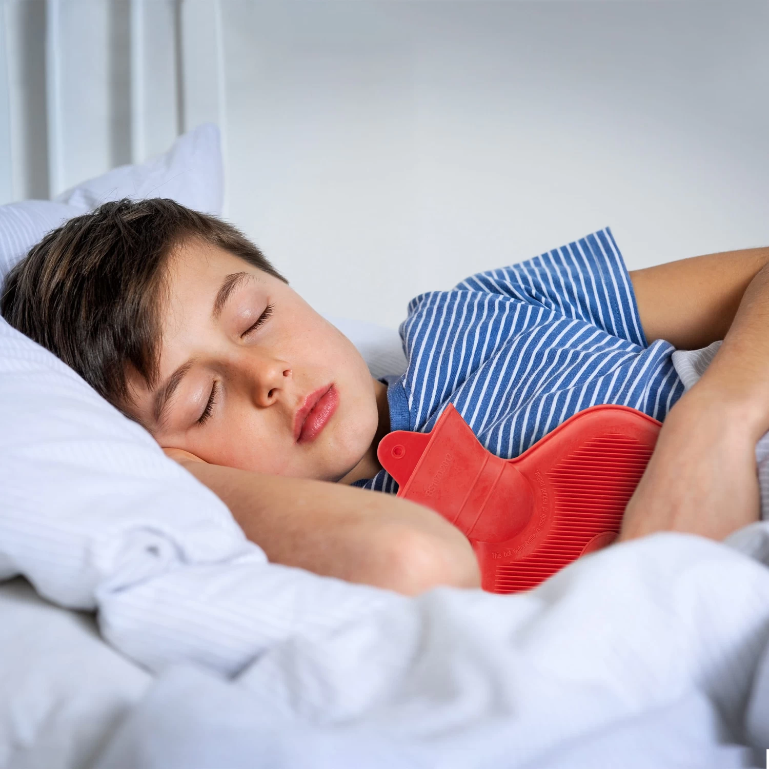 Sicherheitshinweise: Kein kochendes Wasser einfüllen, da Verbrennungsgefahr besteht. Kinder dürfen die Wärmflasche nur unter Aufsicht von Erwachsenen benutzen.