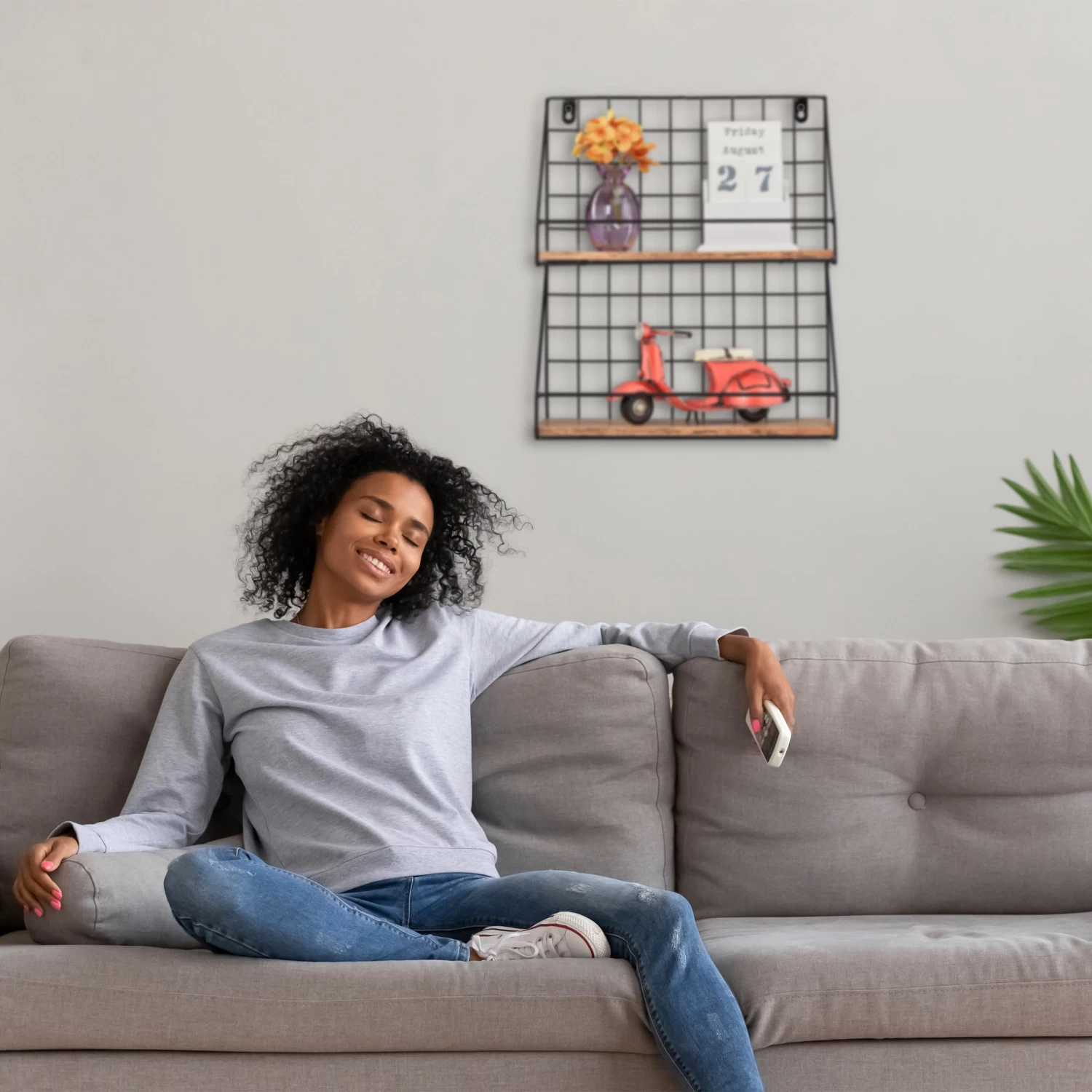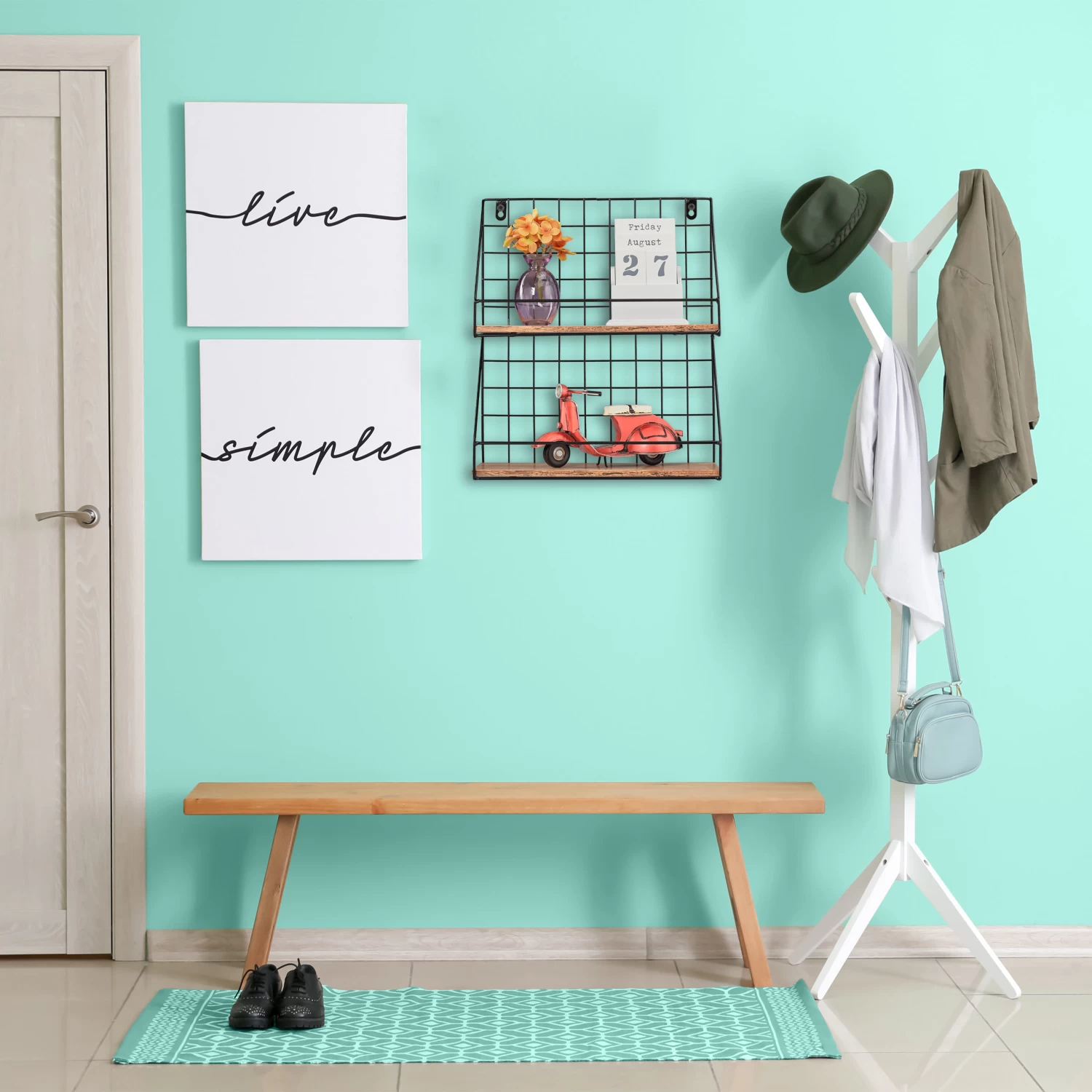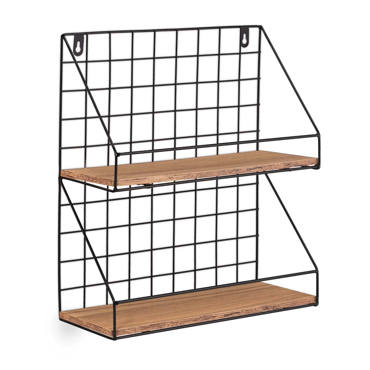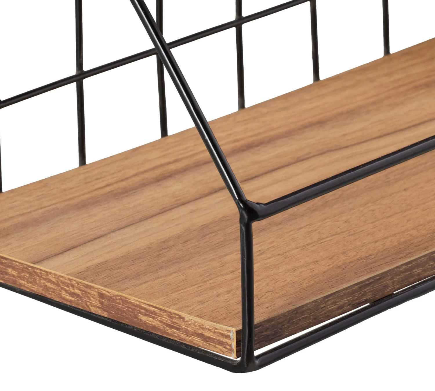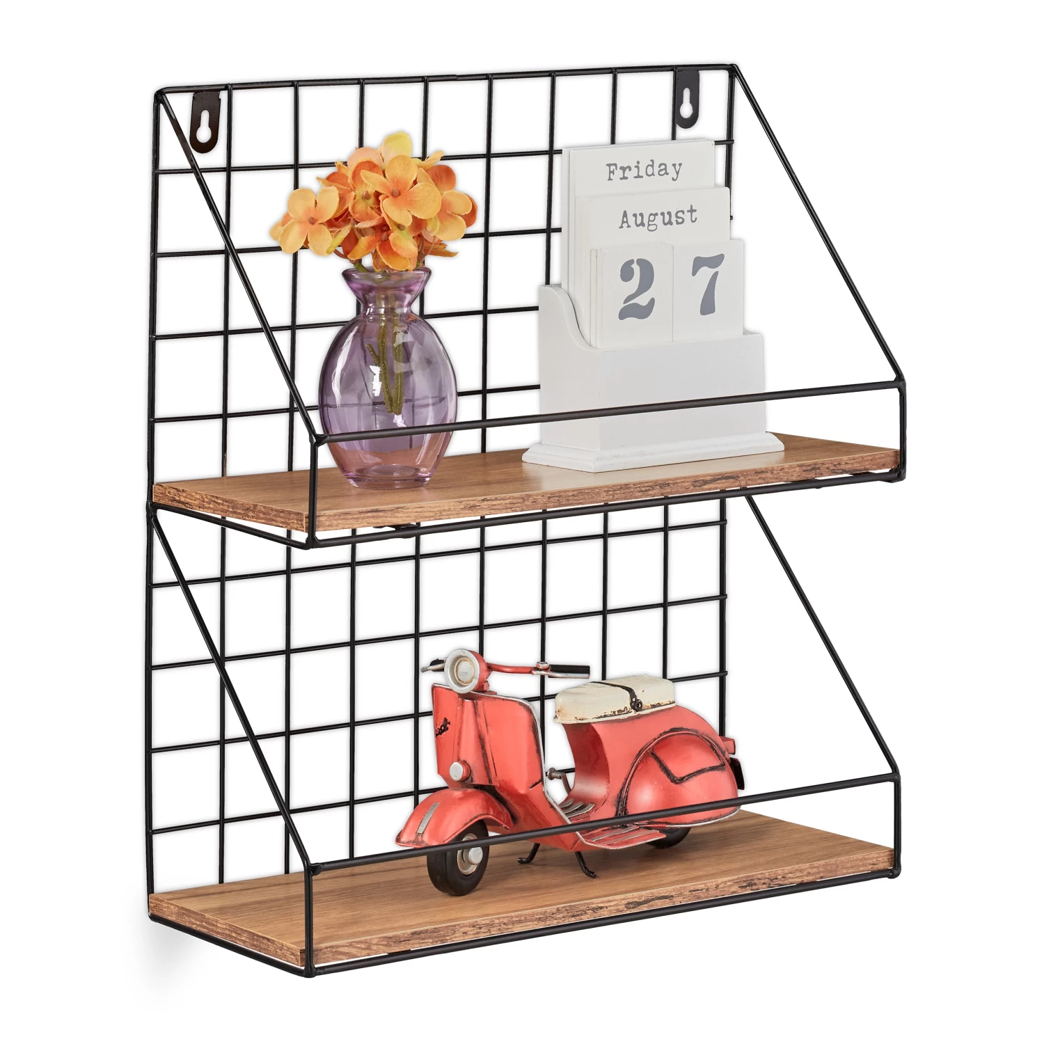 Dieses Wandregal haucht Deinen leeren Wänden im Wohn- oder Schlafzimmer neues Leben ein. Kleine Pflanzen, Bilder und Dekofiguren finden auf den 2 Ablagen einen tollen Platz an der Wand und werden dekorativ in Szene gesetzt. Auch in Flur oder Küche, wo sich das Schweberegal etwa für Gewürze eignet, fügt sich das schlichte Gitter Design perfekt ein. Durch die geschickte Kombination aus brauner Holzoptik und schwarzem Eisen holst Du Dir mit dem Wandbrett den angesagten Industrial Charme nach Hause.