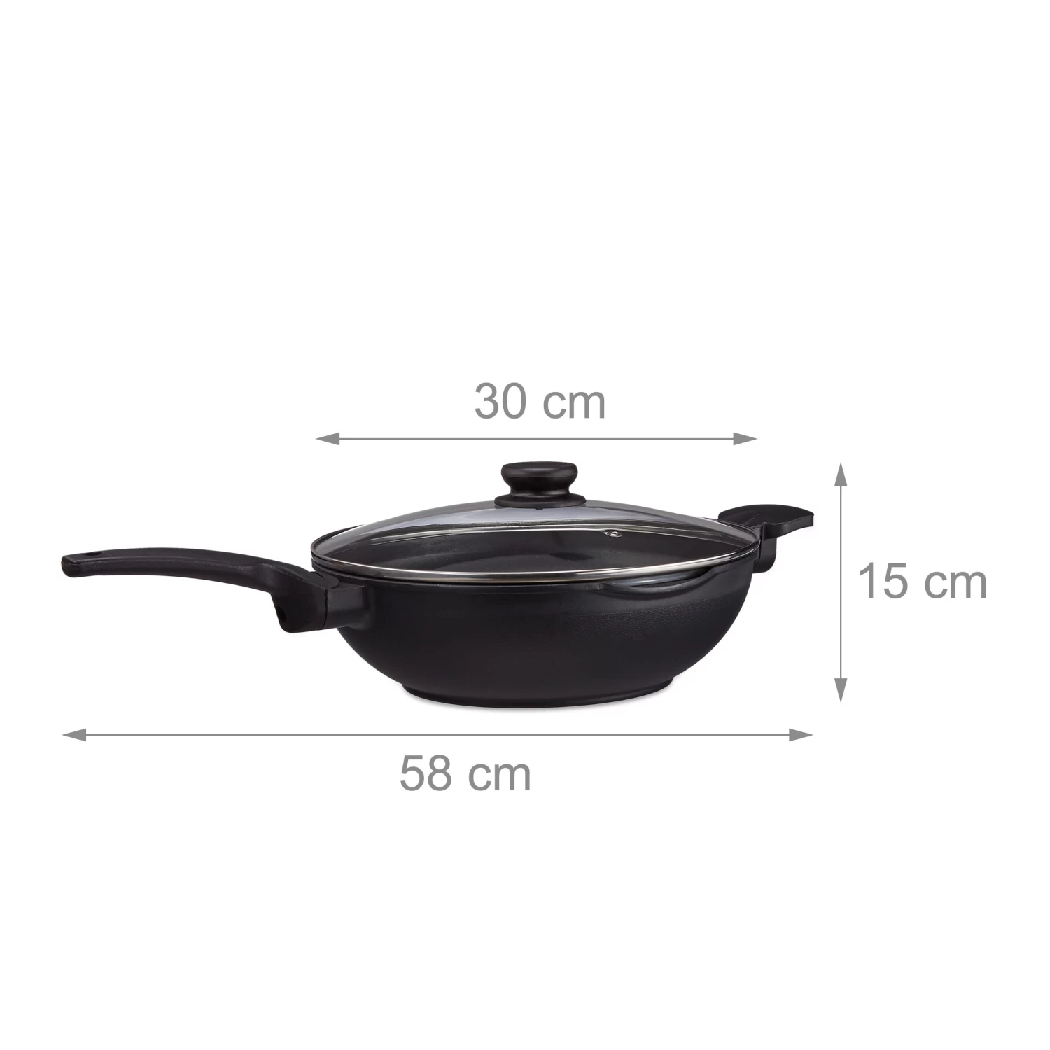 – Schwarze Pfanne mit durchsichtigem Deckel