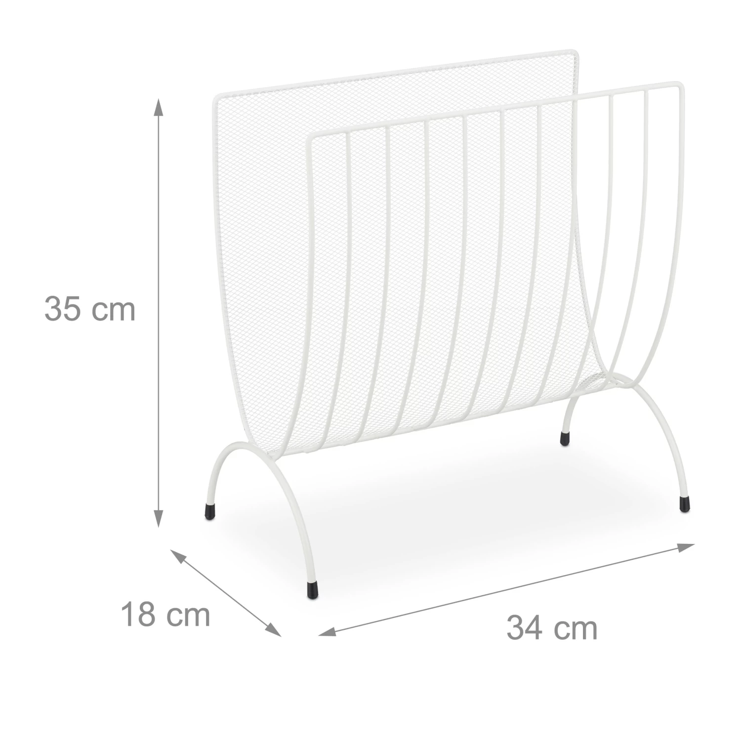 Mit diesem Zeitungshalter verstauen Sie Zeitungen, Zeitschriften und Magazine übersichtlich sowie platzsparend. Dank des offenen Mesh-Designs des Zeitschriftenhalters behalten Sie immer den Überblick über Ihre Lektüre. Aufgrund seiner modernen und dennoch schlichten Gitter-Optik aus weißem Metall fügt sich der Zeitungskorb problemlos in jedes Wohn- oder Badezimmer. Aber auch in Arztpraxen und anderen öffentlichen Wartebereichen können Sie Ihre Gäste mit etwas Lesestoff im Magazinhalter erfreuen.